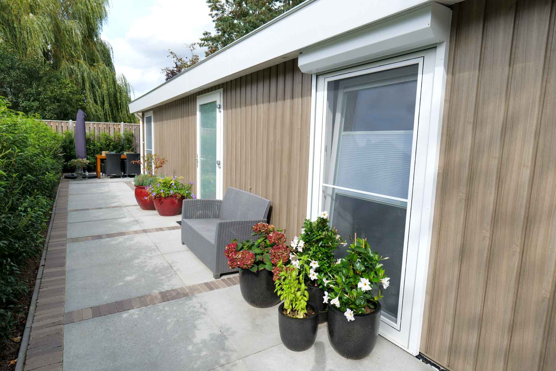 Bij Mantelzorgwoningen.nl kunt u uw zorgwoning geheel naar wens en behoefte samenstellen. Dat betekend dat u tijdens de designdag samen met onze achitect uw eigen woning gaat ontwerpen, vaak op basis van een van onze inspiratiemodellen op het terrein. Zo heeft familie De Natris gekozen voor een houtlook buitenbekleding, een spits dak en een oppervlakte van 100 m2. Ook de mantelzorgwoning indeling hebben zij geheel naar wens aangepast. Zo hebben zij er bijvoorbeeld voor gekozen om een gastentoilet in te delen in de hal. Zo is iedere woning die in onze eigen fabriek vervaardigd wordt helemaal uniek.