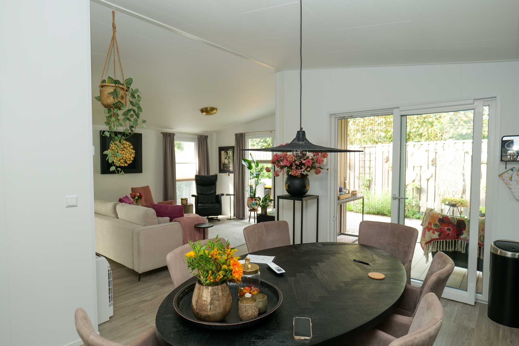 Zo fijn dat jullie geassisteerd hebben met de gemeente. We mochten eerst maar 56 m2 en door jullie hulp mochten we 100 m2 plaatsen. Zo fijn! Het plaatsen van zo'n grote woning was een hele onderneming. Met een kraan over het huis en dat straatje hier is ook niet het makkelijkste straatje. We zijn er zo blij mee en overal genoeg ruimte. We hebben zelf nog een prachtige tuin over en je ziet de eenkoorntjes langs huppelen. Dat is zo fantastisch. We willen echt niet meer weg. Iedereen zegt ook "oohhhh, wat een prachtig huis."