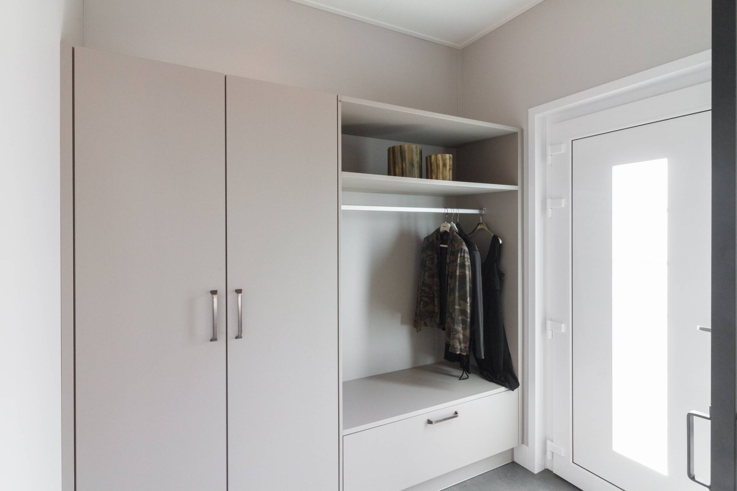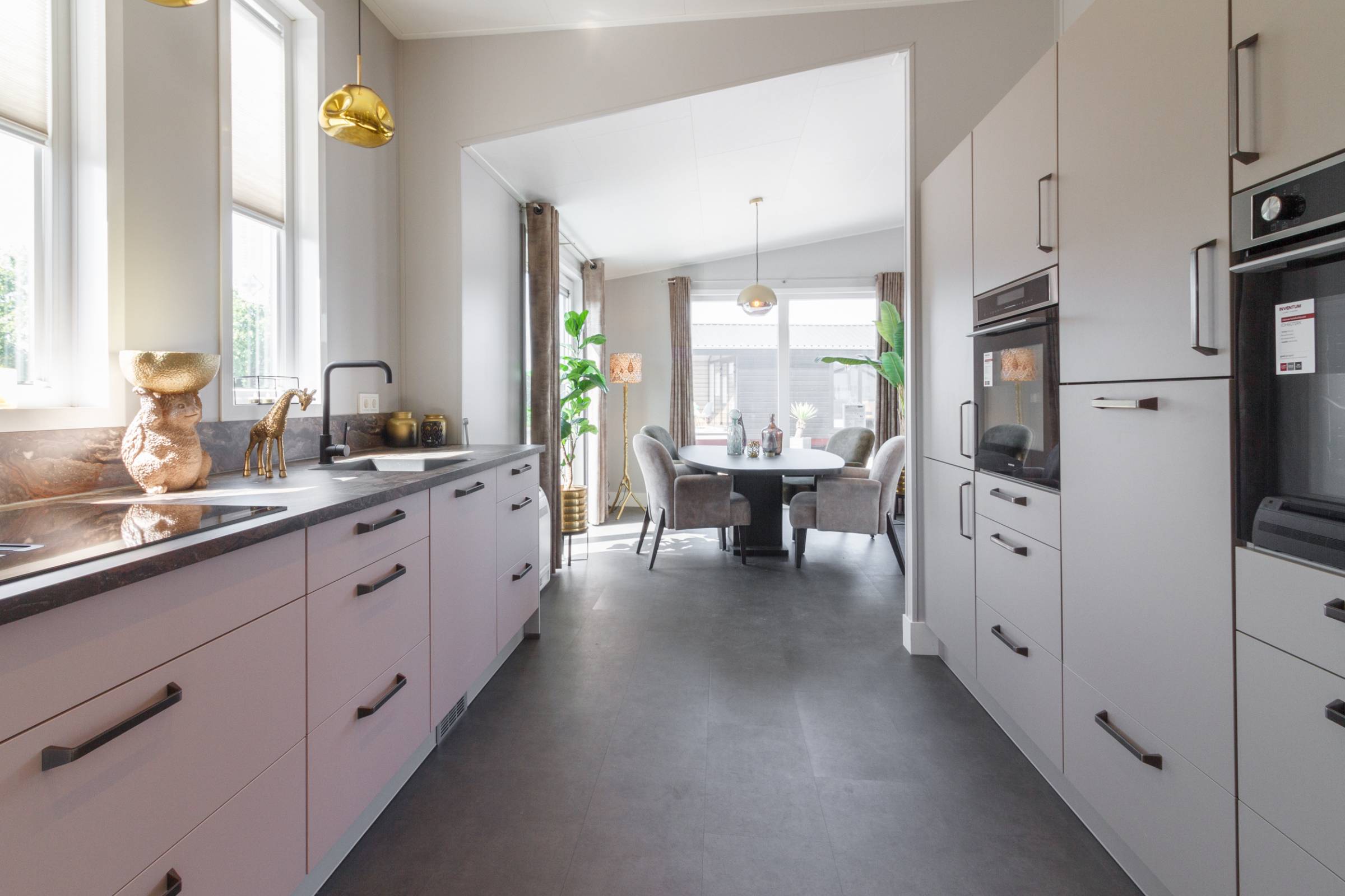 De keuken van dit inspiratiemodel is zeer luxe uitgerust. Daarnaast is al het apparatuur op hoogte geplaatst zodat u niet te hoog hoeft te rijken of hoeft te bukken. De keuken beschikt over een soft-close systeem, een grote koelkast, een oven, een stoomoven en een warmhoudlade.