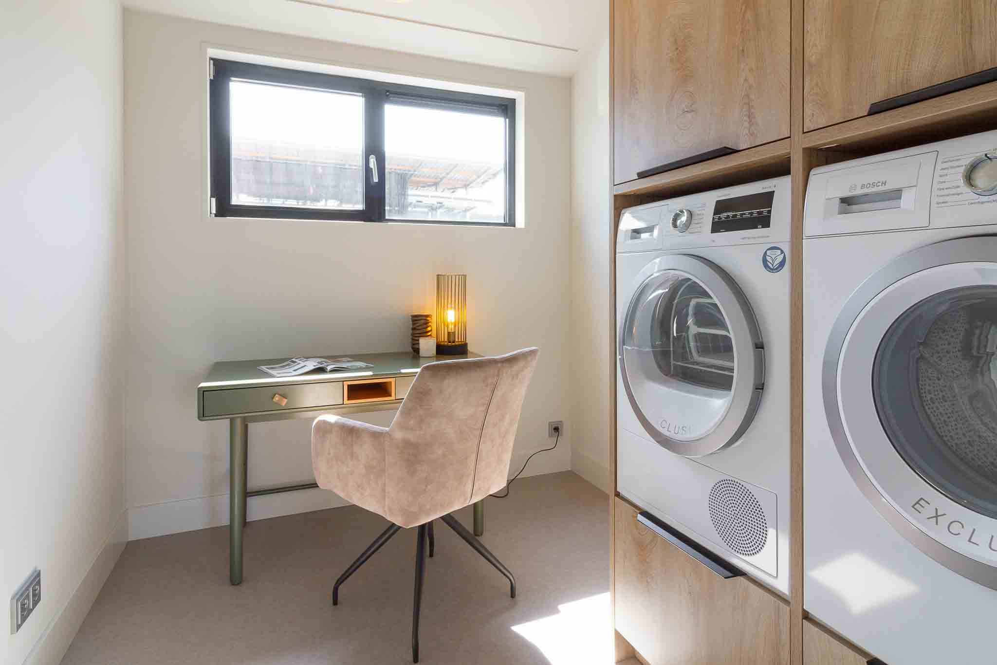 Het samenspel van het hoge plafond en de grote raampartijen maakt de Next Level 2.0 tot een uitzonderlijke mantelzorgwoning. Het hoge plafond creëert een visueel indrukwekkende ruimte, terwijl de grote raampartijen zorgen voor overvloedig natuurlijk licht in de woning. Dit versterkt niet alleen de schoonheid van de ruimte, maar heeft ook een positieve invloed op het welzijn van de bewoners. De lichtinval draagt bij aan een warme en uitnodigende sfeer, waardoor de woning aanvoelt als een echte thuisbasis.
